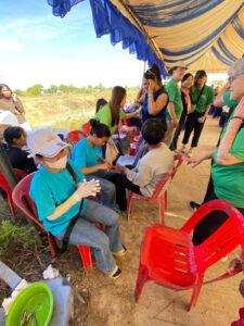 While serving in a different refugee camp yesterday, we witnessed something very moving. Cambodian Christian volunteers were providing haircuts, hair washing, and fingernail trimming under a tent. Hundreds of children and adults were waiting patiently in chairs for their turn. These volunteers were wearing blue shirts donated by a Korean church. On the shirts was a logo with the words “Healing Fields.” When I saw those words, my heart was deeply touched as I reflected on Cambodia’s journey—from the Killing Fields, to Healing Fields, and now, once again, battlefields.